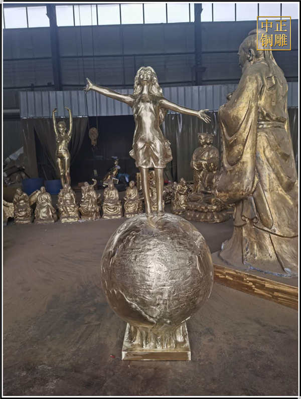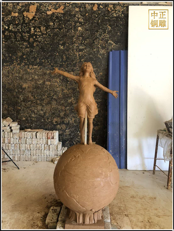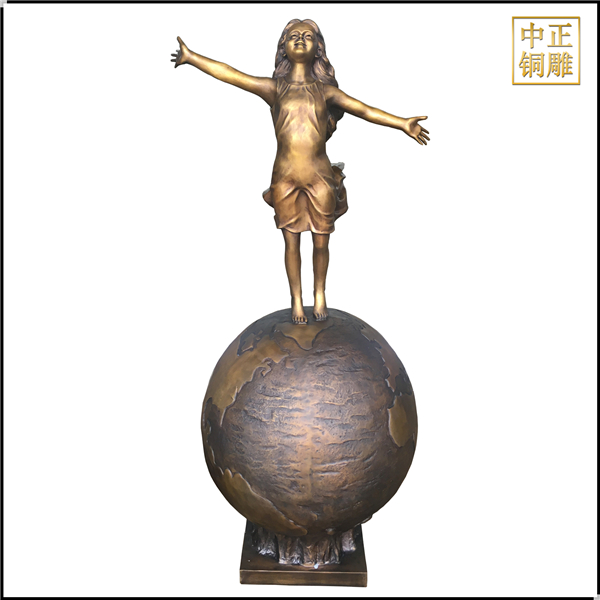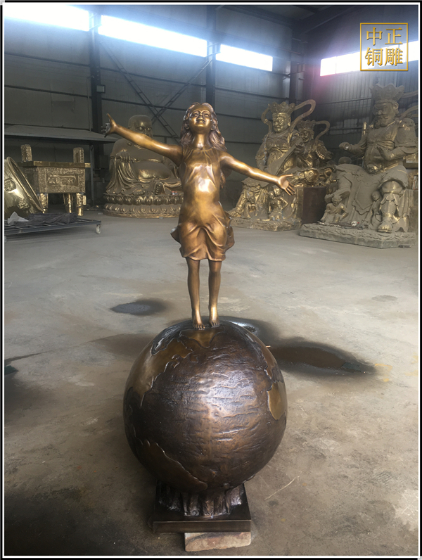 我公司生產的這件高1.5米的站在地球上的小女孩人物雕塑已發往江蘇省鹽城市,這件站在地球上的小女孩人物銅雕塑是以保護地球環境為主題設計制作的。