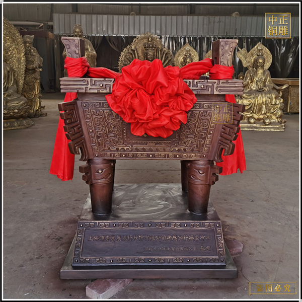 中國是四大文明古國之一,有著悠久的歷史文化,在古代鼎被用作祭祀,禮器。飲器,鼎在古代被看做是權利的象征,被看做是振國之寶,就有三足鼎立之說,而且鼎字還非常的難寫,我國古代只有在皇上和有權勢的達官貴人才可以使用。鼎的起源是在我國原始社會的夏商周三朝就出現了銅鼎,他是最早的青銅器皿,在古代的銅器主要是指青銅時代的的產物,及漢代以后直至明清時期的銅質器物。我們可以把銅鼎放在城市廣場中間,使它作為一種文化的傳承,還可以豐富我們的文化生活。