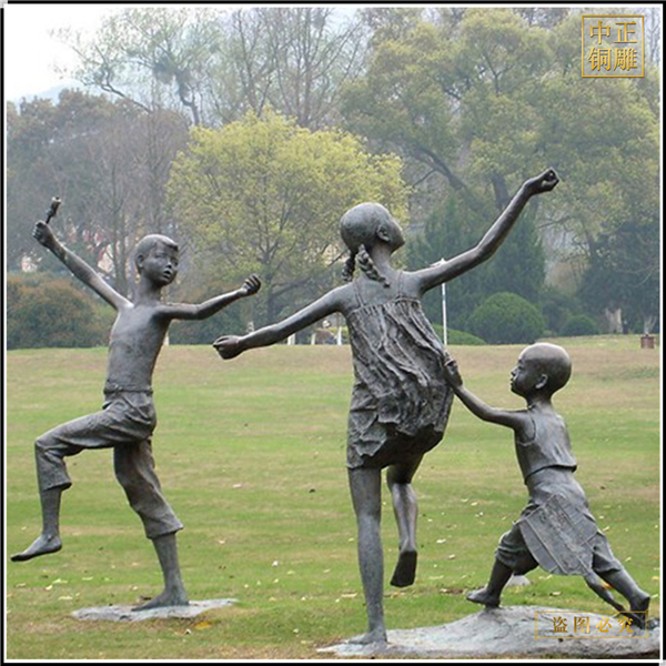 看到廣場(chǎng)或公園中小孩子嬉鬧的銅雕塑作品,就會(huì)想起曾經(jīng)無憂無慮的和小伙伴一起玩耍,有展開相互追逐游戲的,也有捉迷藏的,也有在野外抓小昆蟲小螞蟻的,當(dāng)一個(gè)小孩獨(dú)自玩耍的時(shí)候,通常則更多以玩具為伴,沒有玩具時(shí),也許是一把沙子,一條樹枝,幾片葉子,都可以擺弄半天的時(shí)候。