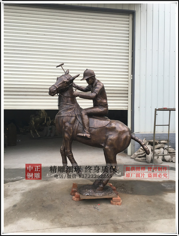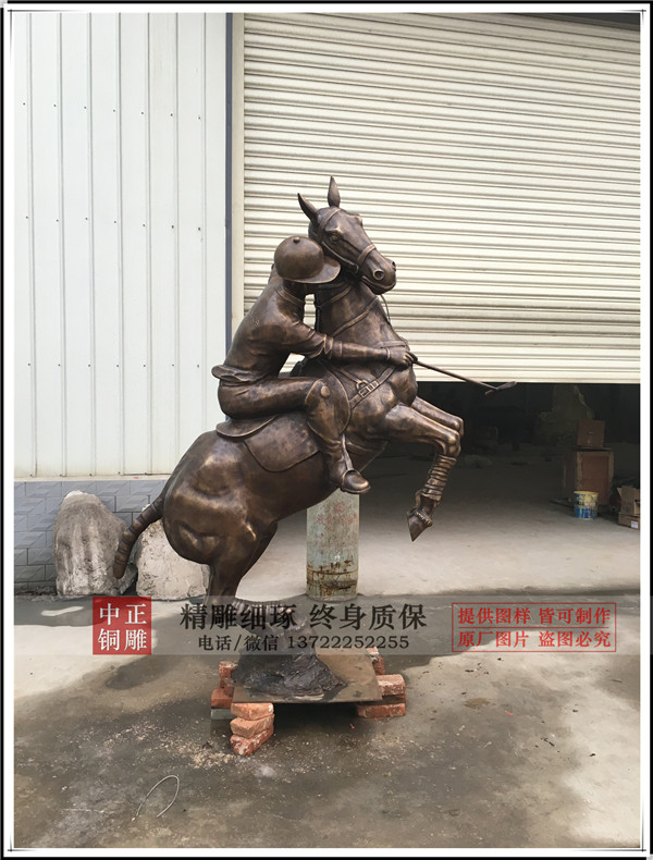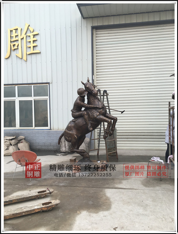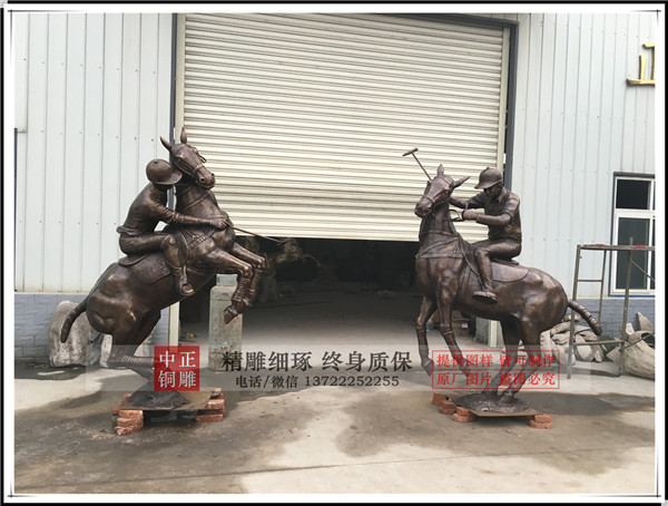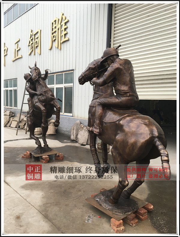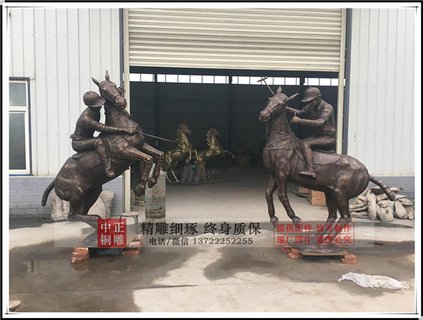 中正銅雕廠家制作生產的鑄銅打馬球騎士銅雕塑今日發貨